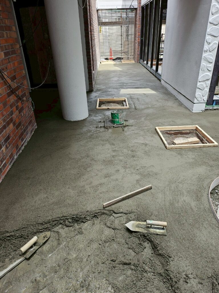 これまでのコンクリート舗装を、天然石が織りなす美しい「乱形石貼り」へとリニューアル。