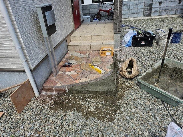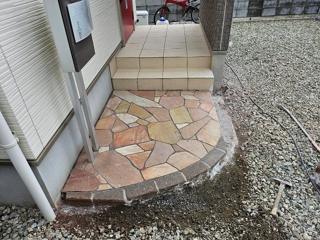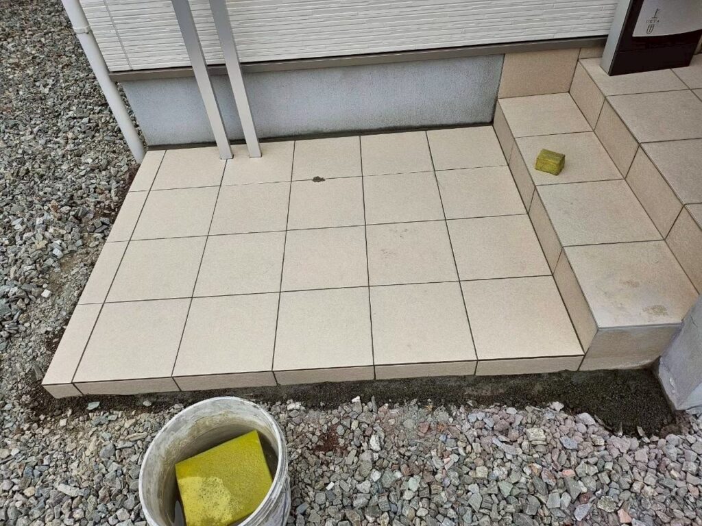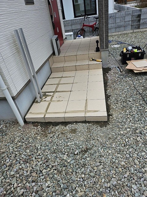 既存の階段に加え、広々としたタイルスペースとスロープを新設しました。